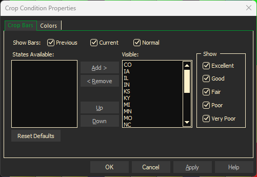 - Click on the Crop Bars tab to select the states you want to view in your display and the Add/Remove to adjust those States.
