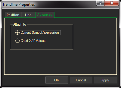 The Trendline Properties consist of the Position tab, the Line tab and the Advanced tab (if applicable).