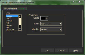 • To bring up the Volume Profile Properties Menu, right click on the Volume Profile display.